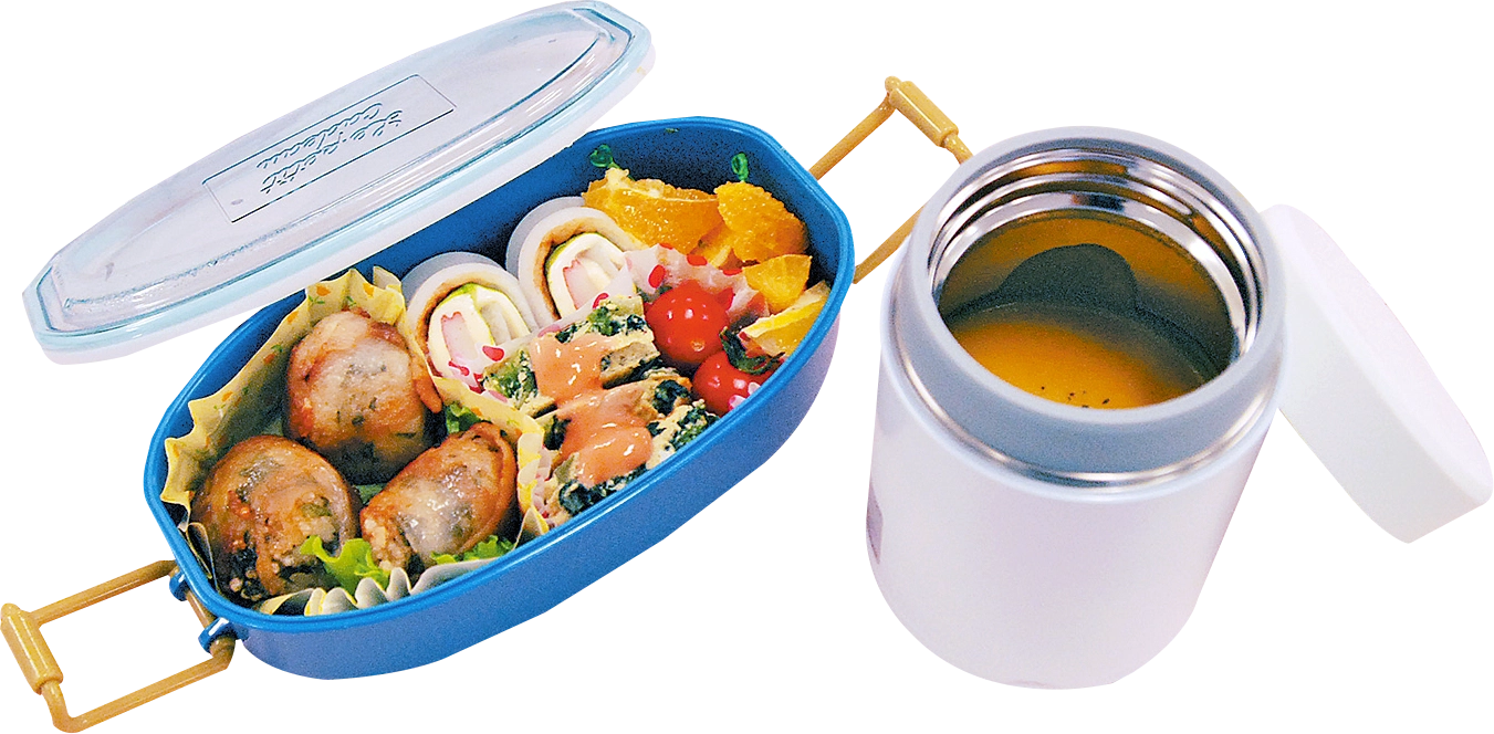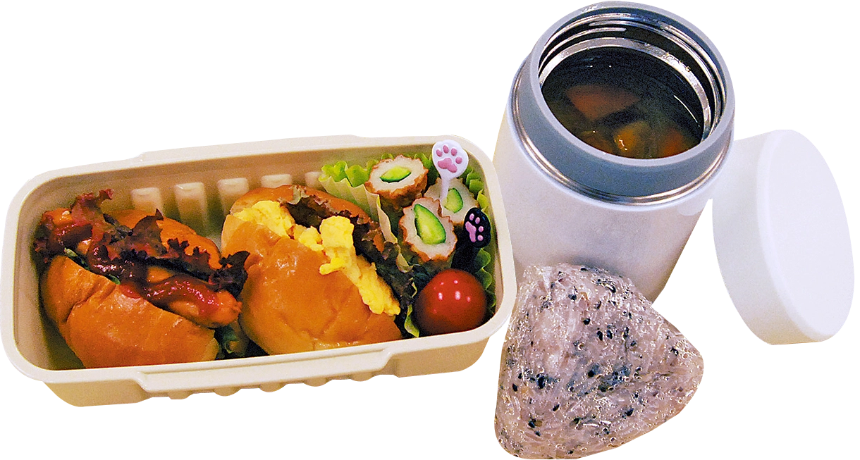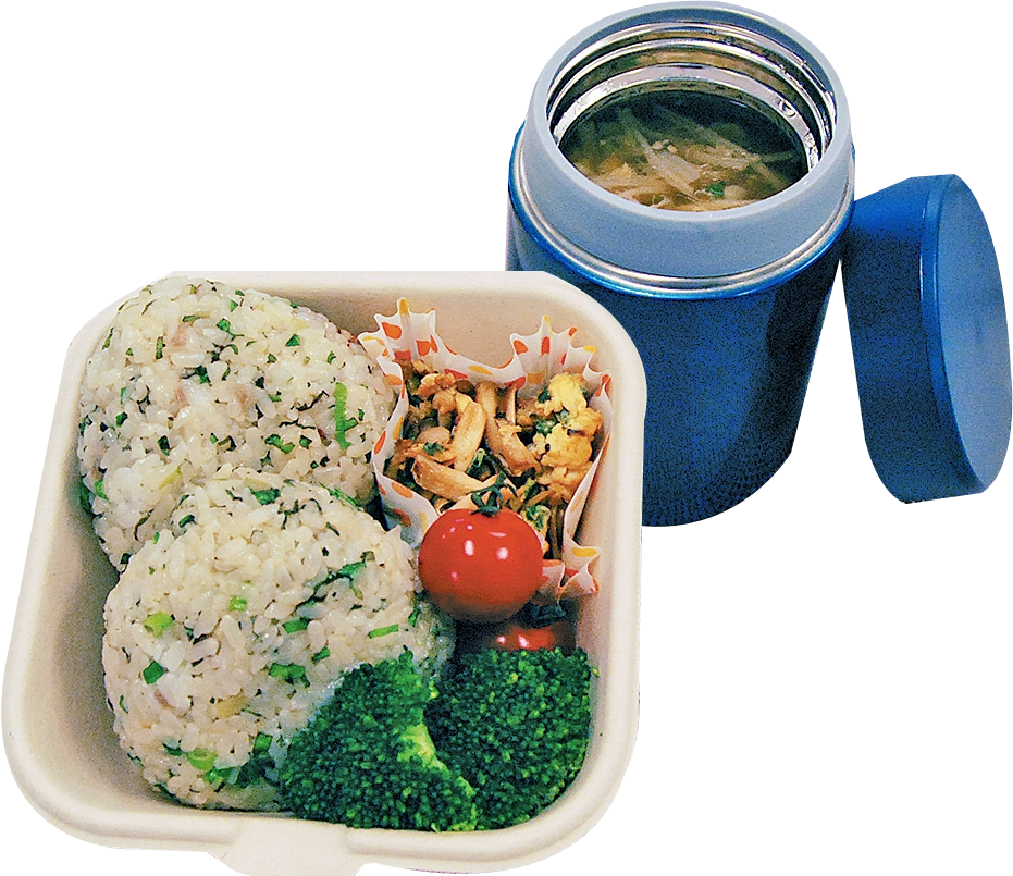 ⚫︎手で食べられるよう持ちやすさを重視。のり巻きに紅生姜、スープにはキムチを使い色と味のアクセントになるようにしました。