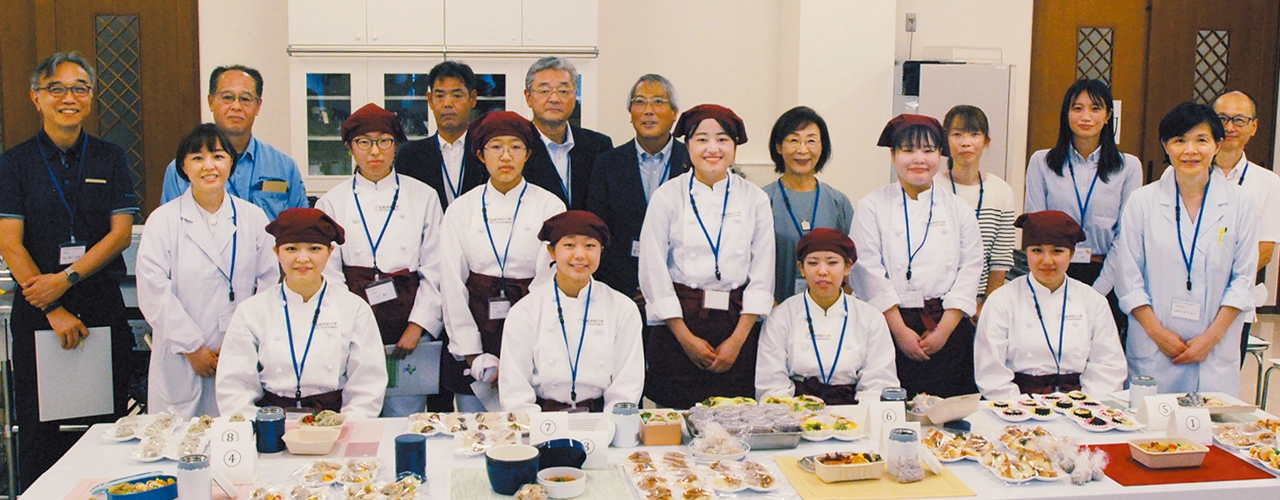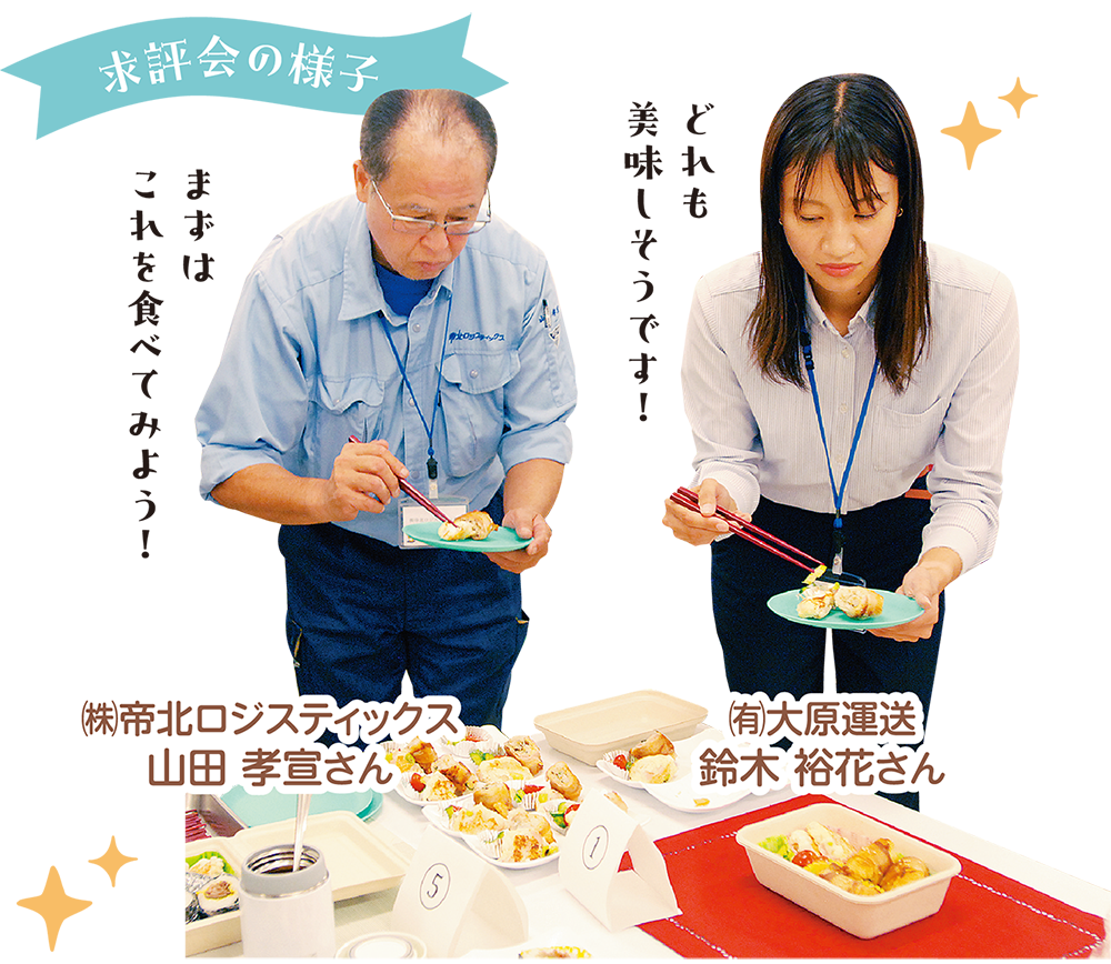 トラックドライバーには偏った食生活が多く、生活習慣病が深刻な問題となっています。そこで、協会では食物栄養に詳しい学生に「トラックドライバーのためのヘルシー弁当」のレシピの開発を依頼しました。 「簡単に作れて手軽に食べられる、美味しい、ヘルシーなお弁当」をコンセプトに検討を重ね、ようやくレシピが完成。福島学院大学にて 「求評会」が開催されました。